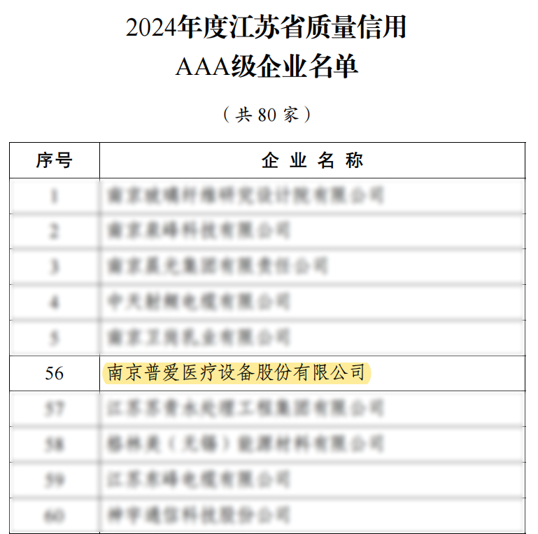 11月25日,江蘇省市場監(jiān)管局發(fā)布了《2024年度江蘇省質(zhì)量信用AAA級企業(yè)公示名單》,普愛醫(yī)療以優(yōu)秀的產(chǎn)品質(zhì)量、穩(wěn)定的運(yùn)營能力及良好的社會(huì)責(zé)任實(shí)踐成功入選。